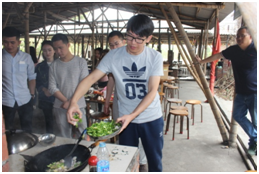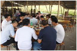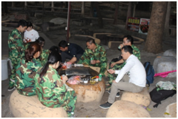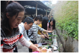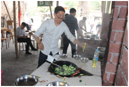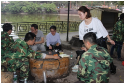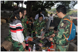在拓展之余,大家也贴近自然,体验生活,放飞心情。第一天晚上烧烤,有的扇风烧炭、有的涂料抹粉,烧烤美味小吃;第二天中午野炊,员工们一起动手,有的洗菜、有的升火添柴,烹制佳肴米饭。