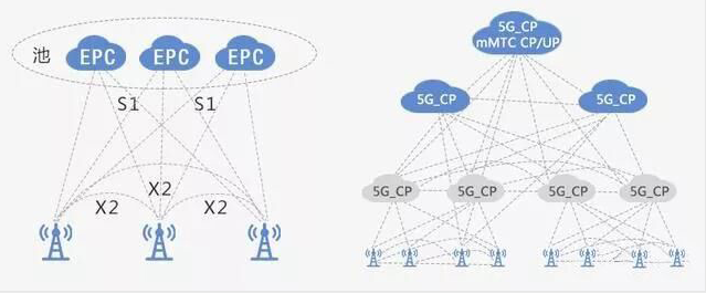5G 无线接入网(RAN)重新划分为有源天线单元(AAU)、分布单元(DU)、集中单元(CU)部分,中心网由 3G/4G 时代集中安置逐步向云化、分布式安置改变,不同业务中心网下沉到不同方位,满足业务低时延的要求,提升用户体会。