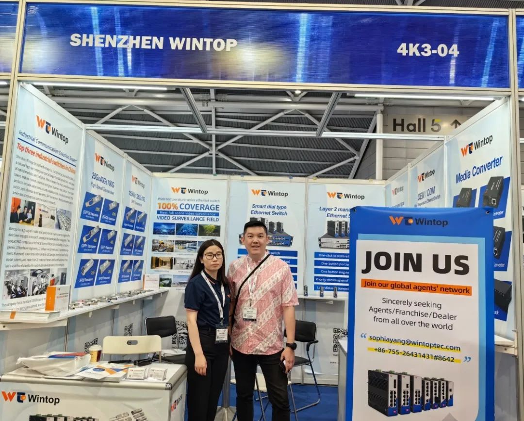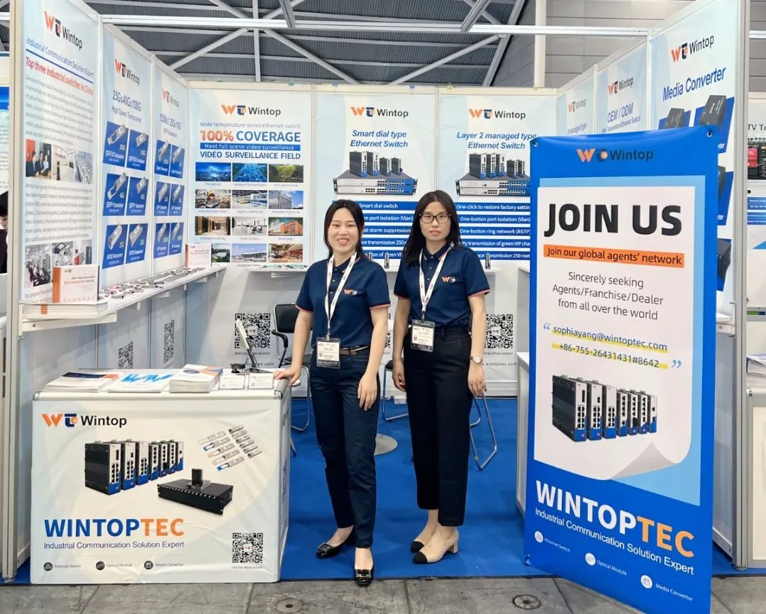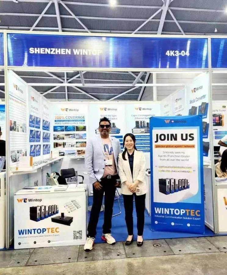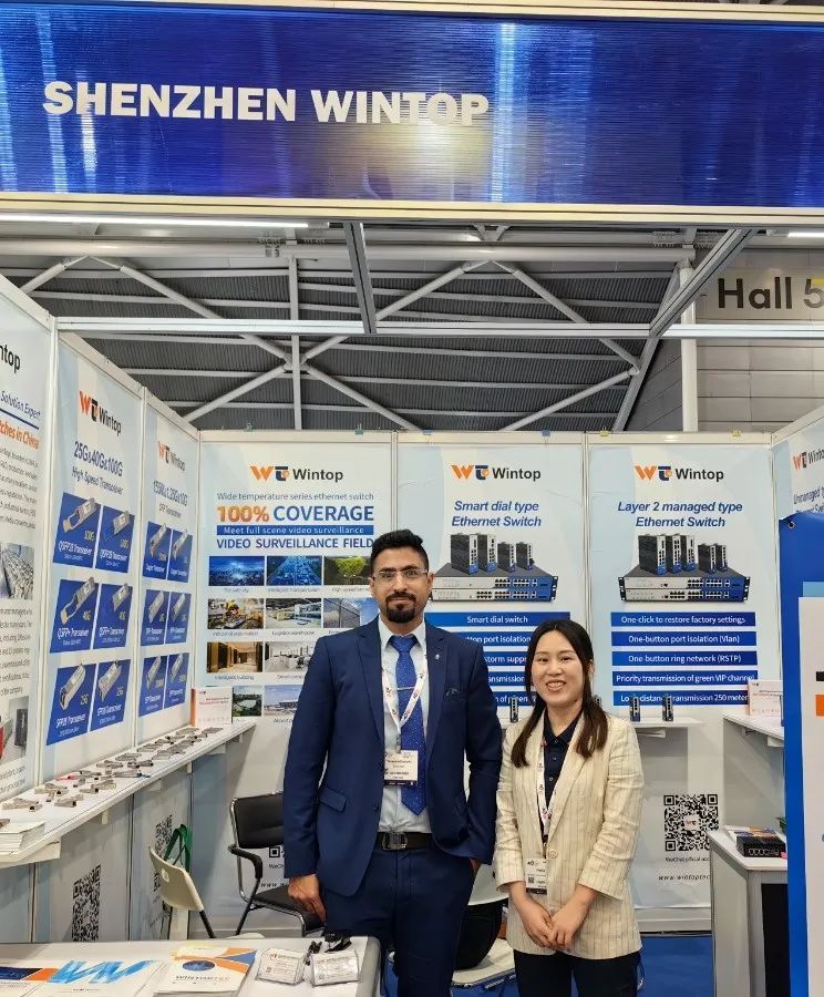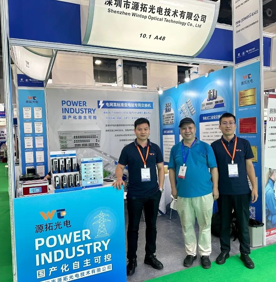 作为智能变电站电力专用交换机的标杆品牌,国家电网和南方电网合格供应商单位,源拓光电已经是亚洲电力展的常客。为匹配本届展会“绿色能源·数字电网”的主题,由公司产品部总监余丁文统筹带队、率领销售精英队伍参与本次展会活动。位于10.1馆A48展位的源拓光电展台,海报设计上高端精美,具有很高的品牌辨识度。商品陈列上突出产品的外观和质感,充分展现大厂的技术底蕴。团队着装统一整齐,以专业自信的姿态迎接每一位客户光临。