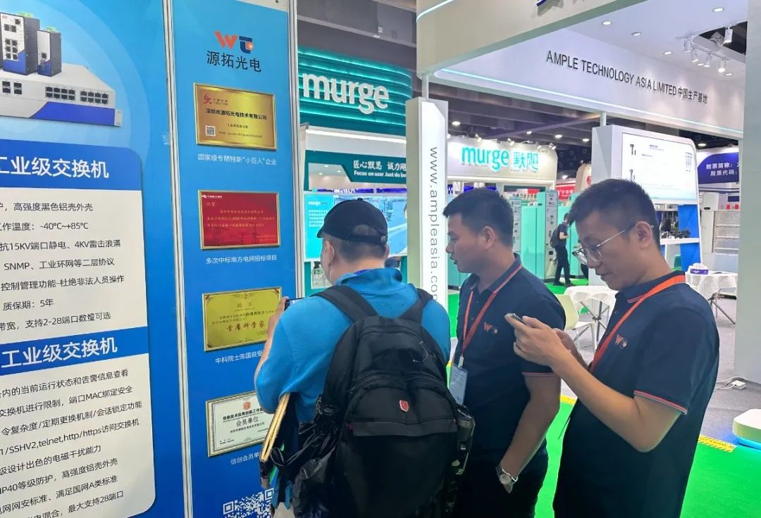 展会期间,源拓光电全国产化智能变电站专用交换机技术和解决方案吸引不少行业观众和专业人士。一位多年从事工程项目设计的客户分享到,公司目前使用的是台湾某莎品牌的工业交换机,但其昂贵的价格一直导致项目成本控制很受限,所以想寻找国产本土品牌的工业交换机。今天通过电力展了解到源拓光电是深圳本土工业交换机制造厂家,拥有一套独立的研发和生产制造体系感到非常高兴。工业交换机国产化替代是趋势也是己任,任重道远,源拓光电将立足通信产业,以客户为中心,为数字时代更加安全、繁荣、美好的未来奉献力量的企业使命,让国家级专精特新“小巨人”迸发“大能量”。