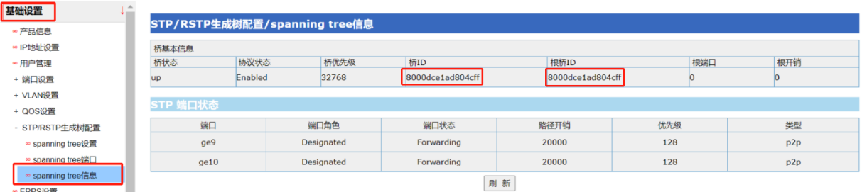 1)STP/RSTP生成树配置/spanning tree端口设置-协议版本-RSTP;