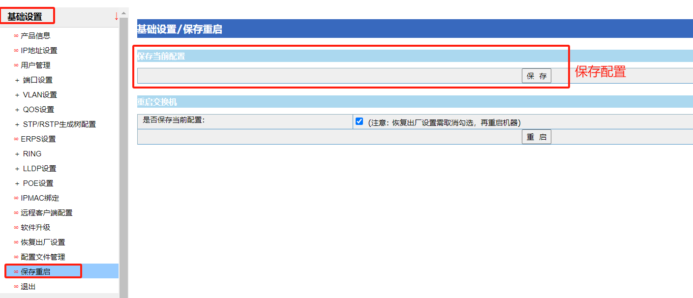 2)功能选项基础设置/保存重启,点击保存按钮。