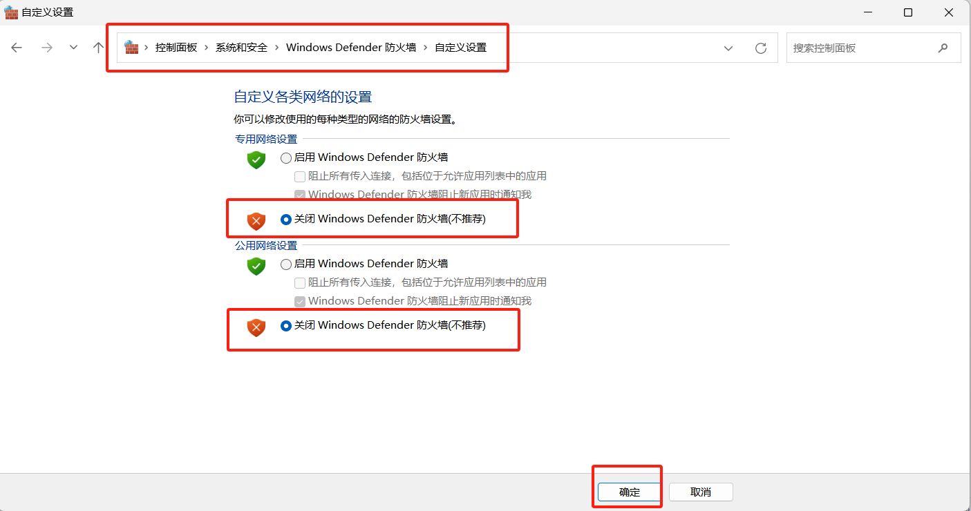 4)使用WT-SWITCH小程序扫描交换机必需关掉防火墙功能(控制面板系统和安全Windows Defender 防火墙自定义设置);