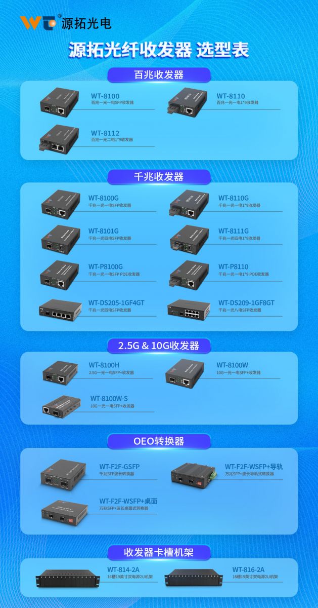 源拓光纤收发器产品线丰富多样,涵盖百兆、千兆、2.5G、10G、OEO单、多模转换器和14槽、16槽机架等多种类型。同时,支持SC、FC、ST和LC四种接口定制,即插即用,方便快捷。其光口支持最高120公里超长距离传输,特别适用于工业园区、景区、停车场、商超、社区等安防监控、无线组网、光纤接入等应用场景,为不同行业的网络建设提供了可靠的解决方案。