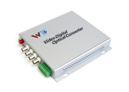 WT fiber-optic video transceivers can simultaneously transmit 4 channels of 8-bit digitally encoded video / return or bidirectional data / unidirectional or bidirectional audio / Ethernet / Telephone / Dry contact over one multimode or single-mode optical fiber.