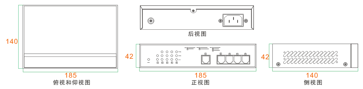 外壳: 金属,IP30防护 尺寸 :185mm*140mm*42mm 重量 :750g 安装方式 :桌面式/壁挂式 |