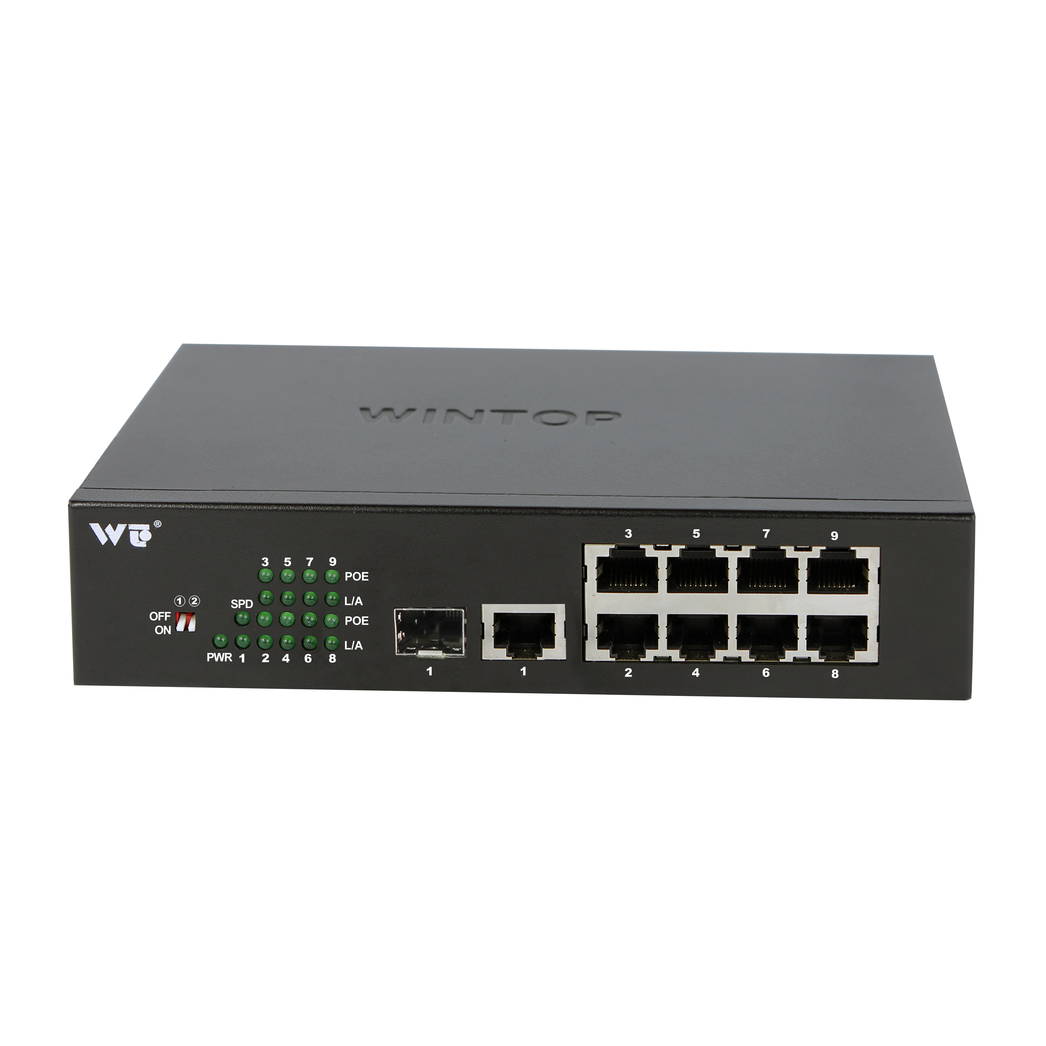 DS209-1GF8T-AF是一款即插即用型POE以太网供电交换机,最大支持1个千兆光口和8个百兆电口,采用无风扇、低功耗、工业4级设计,具有IP30防护等级。产品支持IEEE802.3af以太网供电标准,供电距离为100米,简单可靠的设计,采用先进的PoE节能芯片,无数据和电力传输时,接口自动转至节能状态,最大限度的降低功耗,降低运营成本。具有- 20 ~ 60℃的工作温度,具有超强的坚固度,能适应户外严苛环境,高EMI/EMC防护能力,每个产品都已经通过100 %的老化测试确保质量。该产品已广泛应用于采用POE供电的以太网通信系统中。