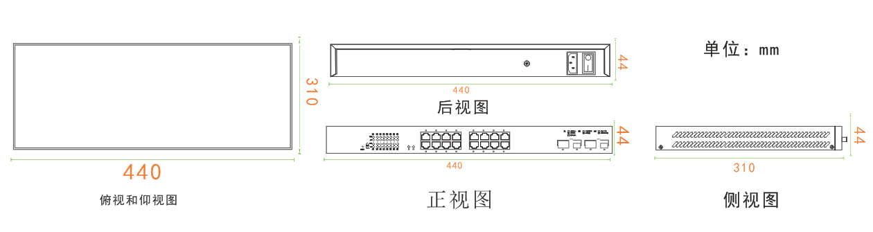 外壳: 金属,IP30防护 尺寸 :440x210x44mm 重量 :2400g 安装方式 :机架式安装 |