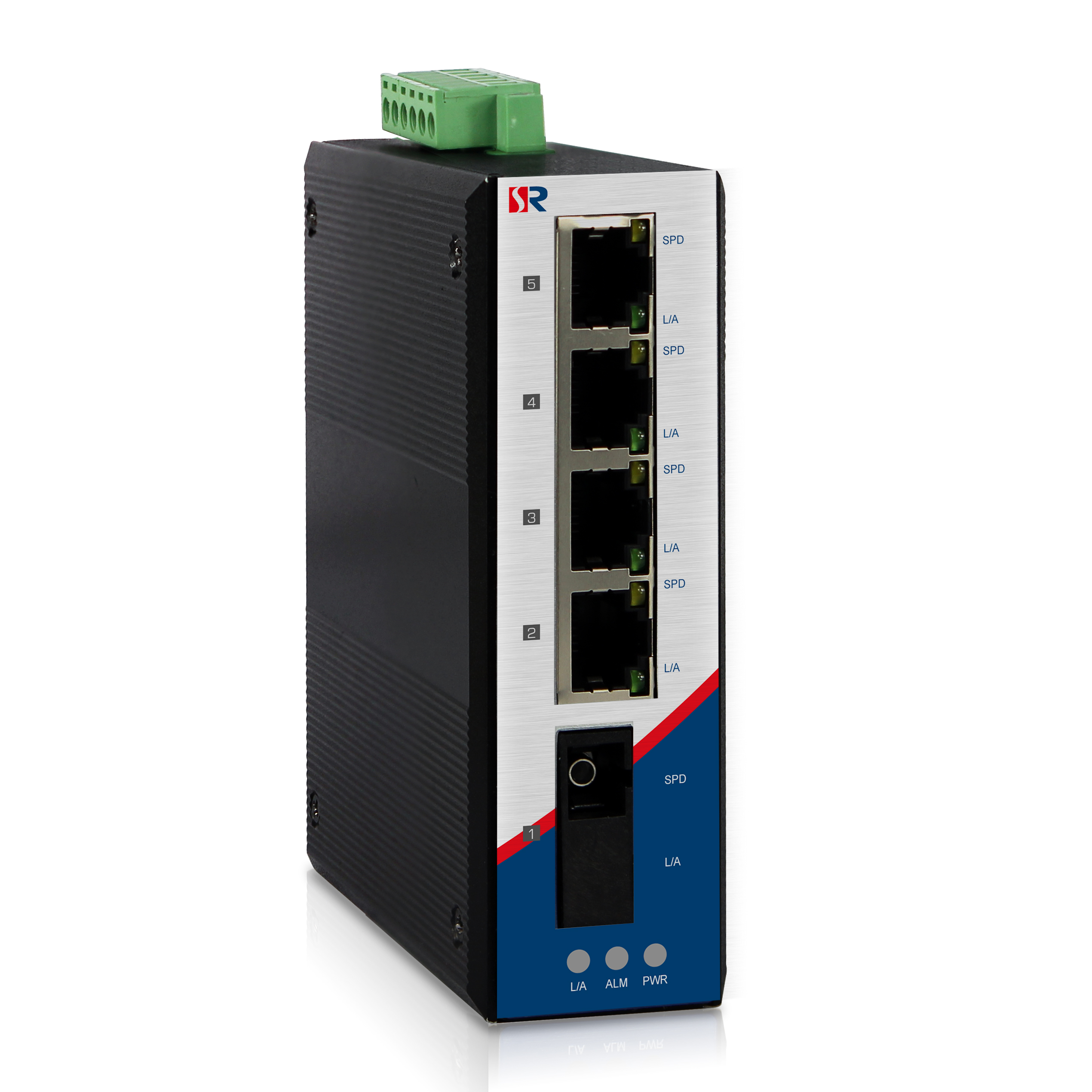 RS105-1F4T-DC48-AF是源拓光电针对风电,配网,交通,石油石化等工业领域需求而开发的导轨型工业以太网交换机。产品有4个下联百兆电口,提供高速的包转发能力以及充裕的背板带宽,保证图像清晰,流畅的传输。本产品具有IP40防护的金属外壳,抗强振动的卡轨座,-40℃~ 85℃极端环境温度适应能力及良好的EMC电磁兼容性能,使该系列产品具备在恶劣工业环境下稳定可靠工作的能力。下联1-4电口支持IEEE802.3af和IEEE802.3AF标准POE供电。
