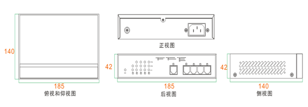 外壳: 金属,IP30防护 尺寸 :185mm*140mm*42mm 重量 :700g 安装方式 :桌面式/壁挂式 |