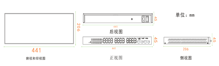 外壳: 金属,IP30防护 尺寸 :441x206x45mm 重量 :2400g 安装方式 :机架式安装 |
