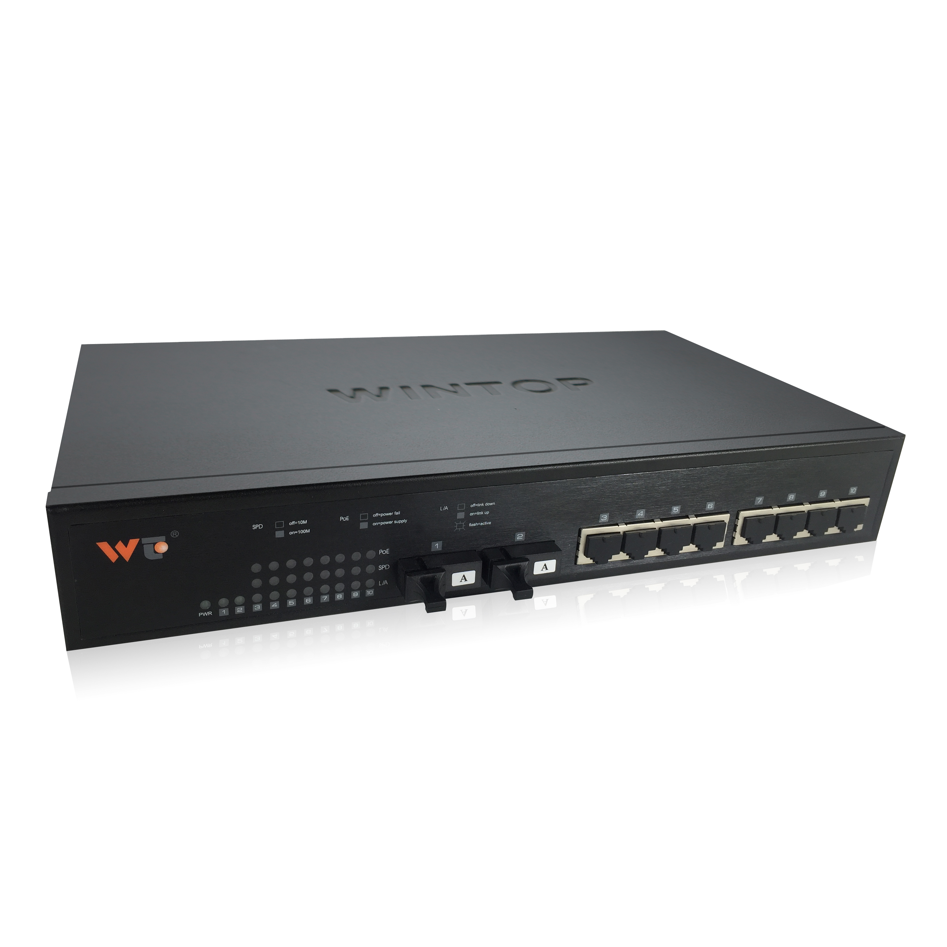 DS1010-2GF8T-AF是一款即插即用型POE以太网供电交换机,最大支持2个千兆光口和8个百兆电口, 采用无风扇、低功耗,具有IP30防护等级。产品支持IEEE802.3af以太网供电标准,供电距离为100米,简单可靠的设计,采用先进的PoE节能芯片,无数据和电力传输时,接口自动转至节能状态,最大限度的降低功耗,降低运营成本。具有- 20 ~ 60℃的工作温度,具有超强的坚固度,能适应户外严苛环境,高EMI/EMC防护能力,每个产品都已经通过100 %的老化测试确保质量。该产品已广泛应用于采用POE供电的以太网通信系统中。