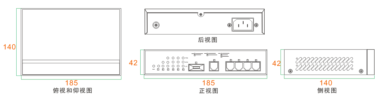 外壳: 金属,IP30防护 尺寸 :185mm*140mm*42mm 重量 :750g 安装方式 :桌面式/壁挂式 |