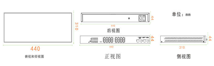 外壳:金属,IP30防护 尺寸:440mm*310mm*44mm 重量:3100g 安装方式 :机架式 |