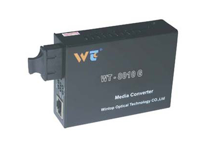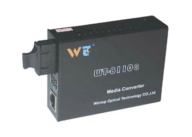 The network device (work station, hub or switch) with RJ-45 interface is connected to RJ-45 jack of optical transceiver through twisted-pair.