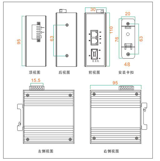 • 外观结构:IP40等级防护,高强度铝壳和金属外壳,DIN卡轨式安装,无风扇,低功耗设计;