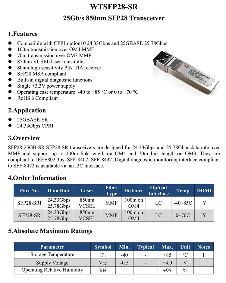 源拓WT-SFP28-SR 25G 多模双纤100米商业级(850nm)