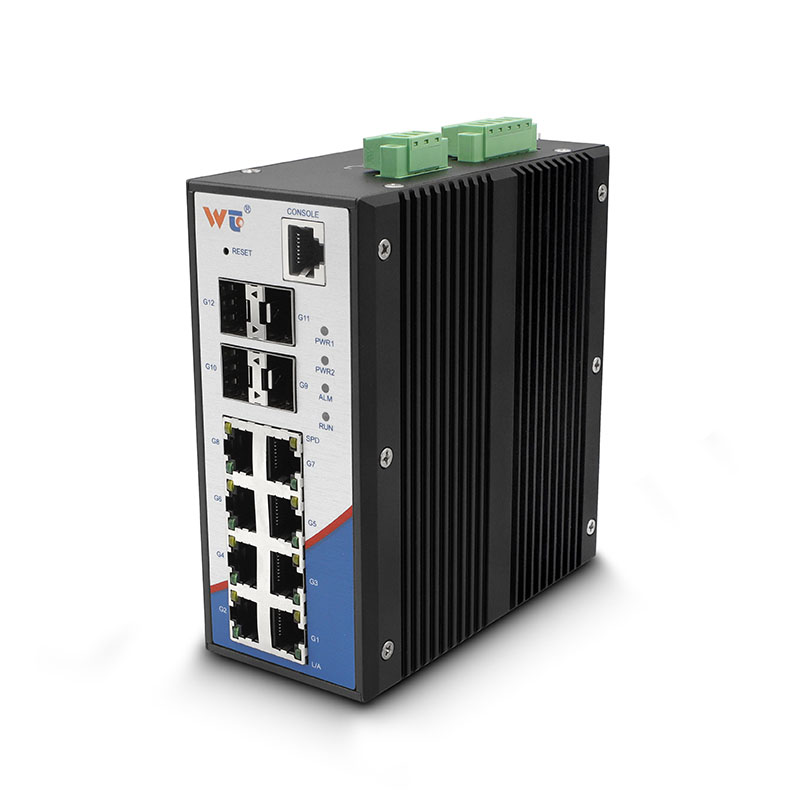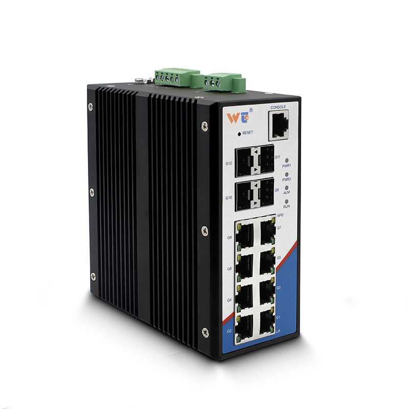 12端口卡轨网管型工业以太网交换机,带4个千兆光口,8个千兆电口