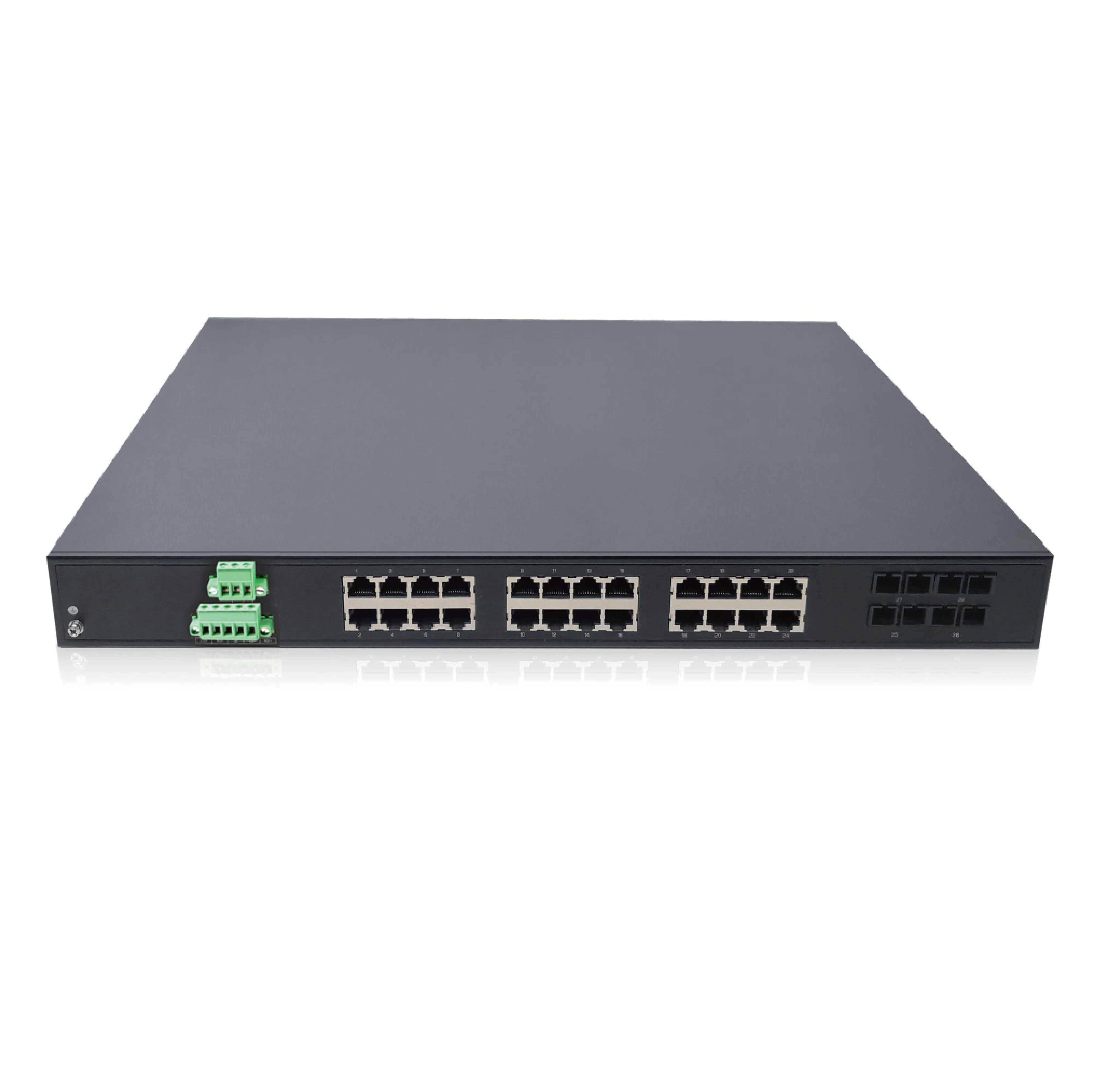 28端口工业以太网交换机,带 4个千兆光口,8个百兆光口和 16百兆电口