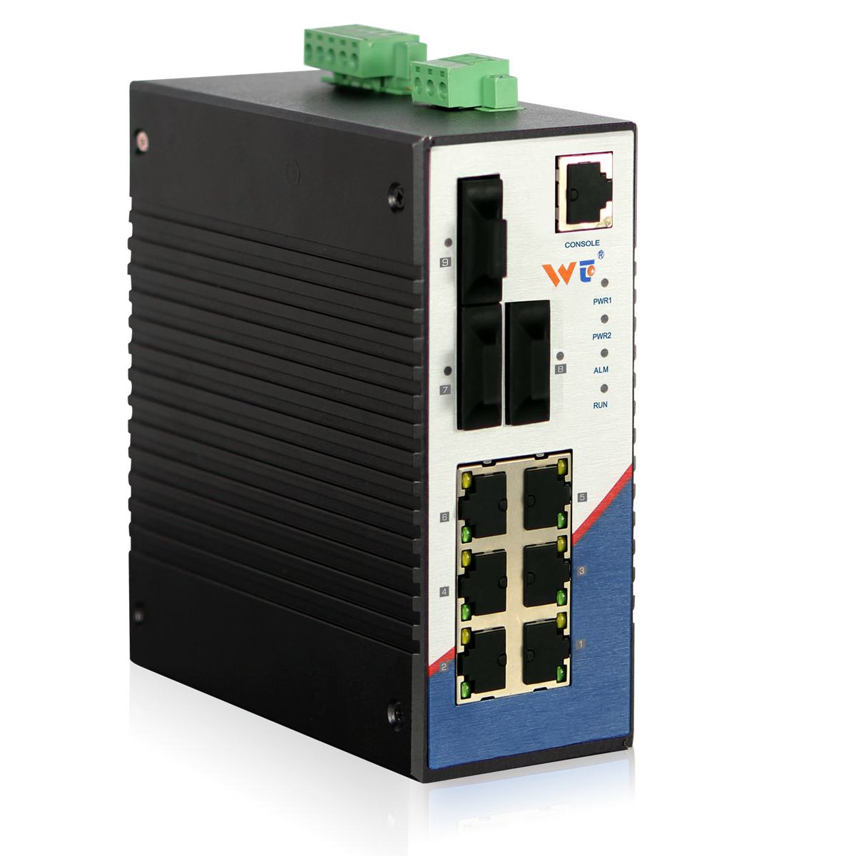 导轨网管型工业以太网交换机,带2个千兆光口和4个千兆电口