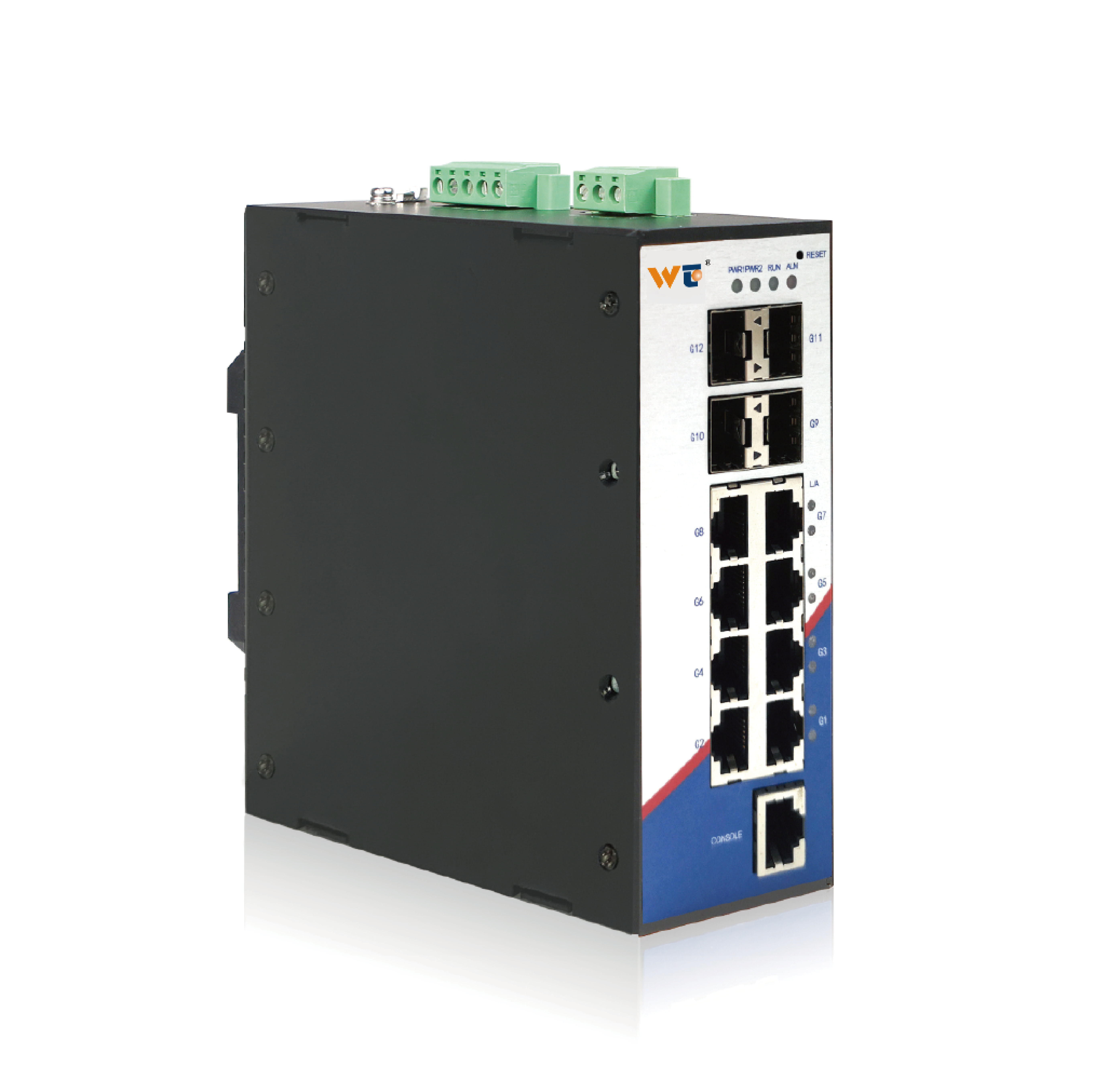 12端口卡轨网管型工业以太网交换机,带4个千兆光口,8个千兆电口