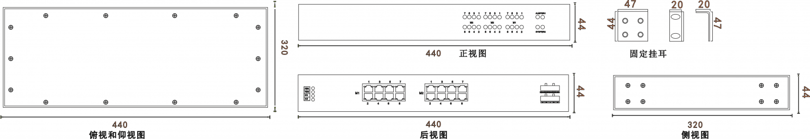 外壳 : 铝壳,IP40防护 尺寸 : 440mm*320mm*44mm 重量 : 3100g 安装方式 :机架式安装 |