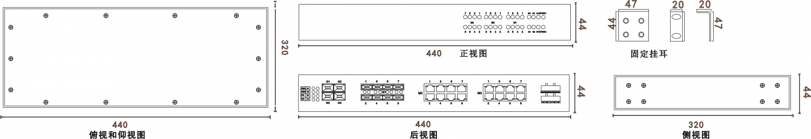 外壳 : 铝壳,IP40防护 尺寸 : 440mm*320mm*44mm 重量 : 3100g 安装方式 :机架安装 |