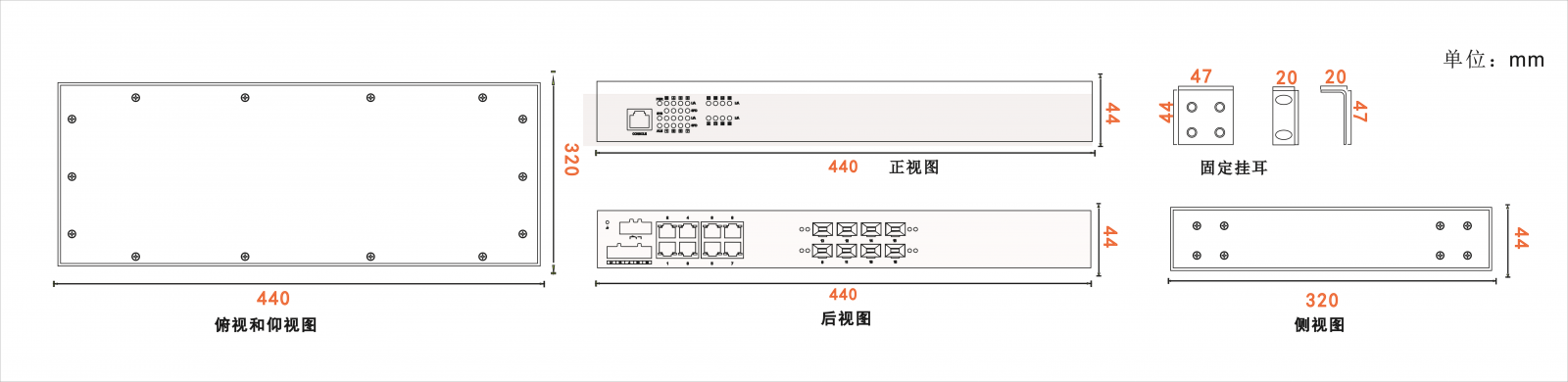 外壳 : 金属,IP40防护 尺寸 :440mm*320mm*44mm 重量 : 3100g 安装方式 : 机架式 |