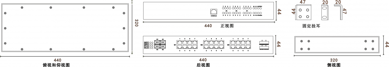 外壳 : 铝壳,IP40防护 尺寸 : 440mm*320mm*44mm 重量 : 3100g 安装方式 : 机架式 |